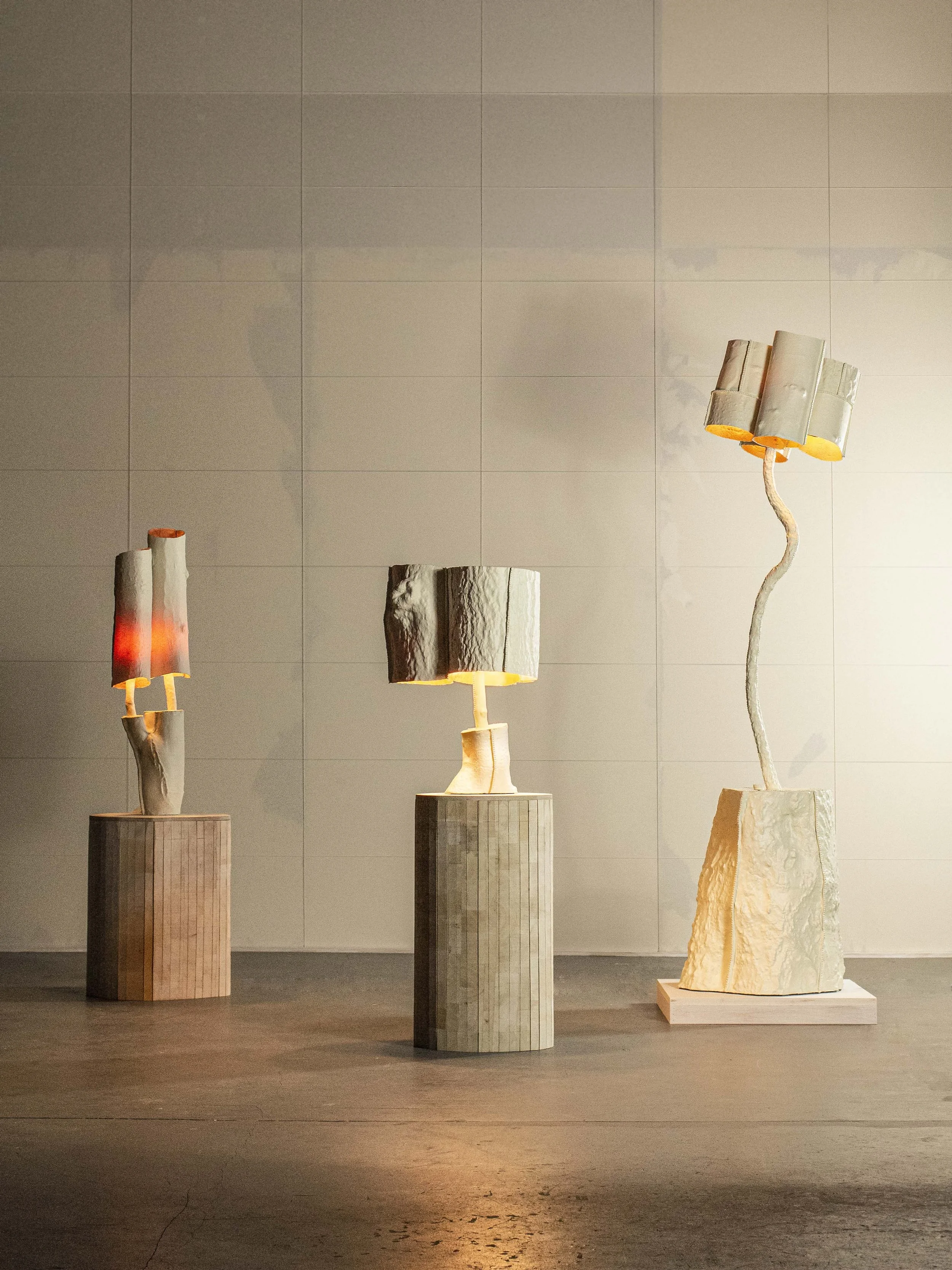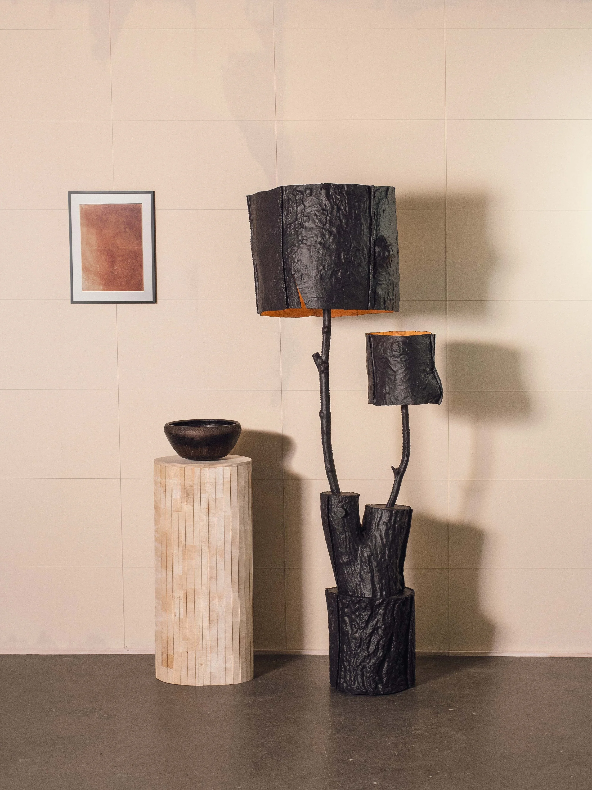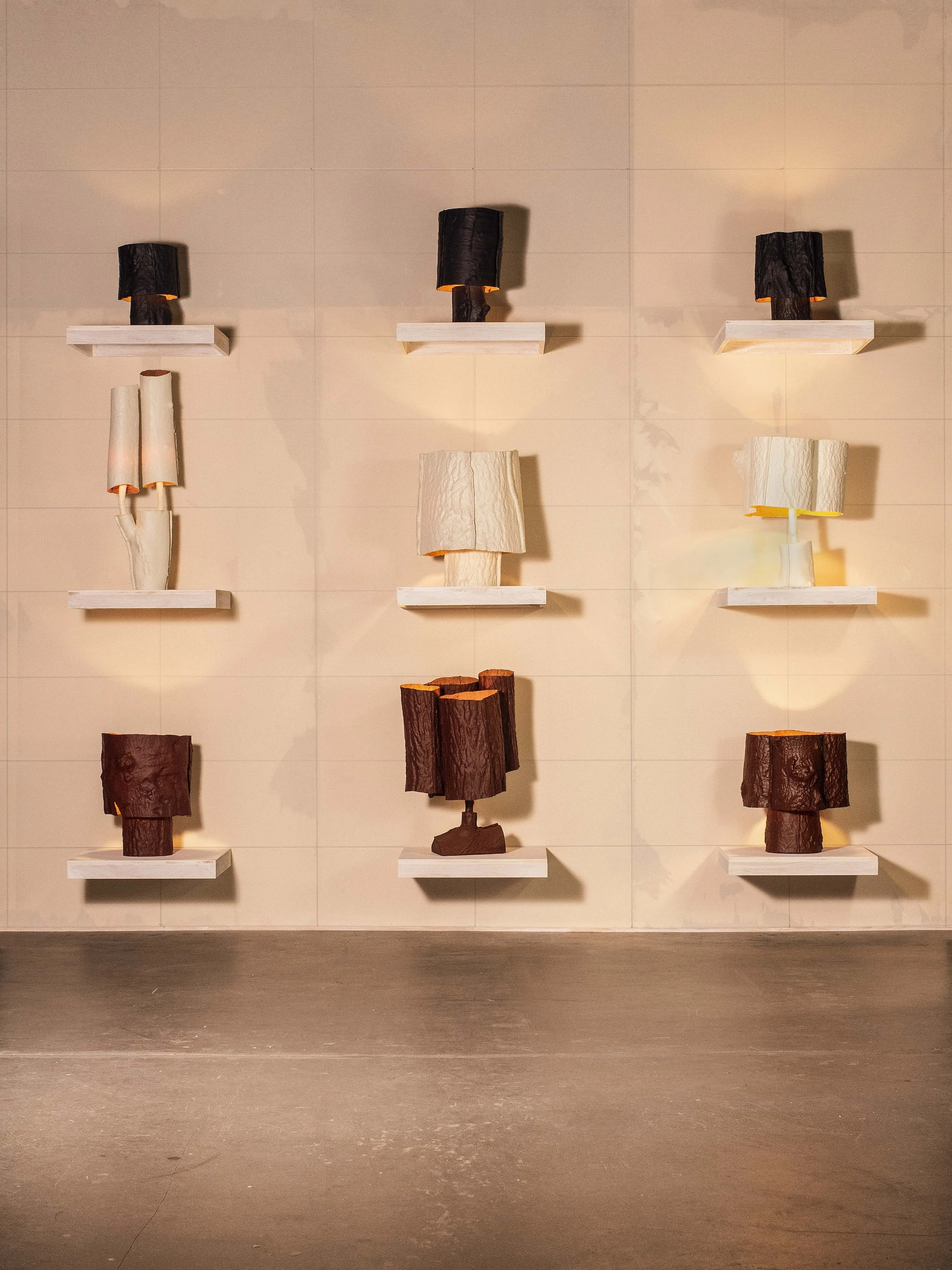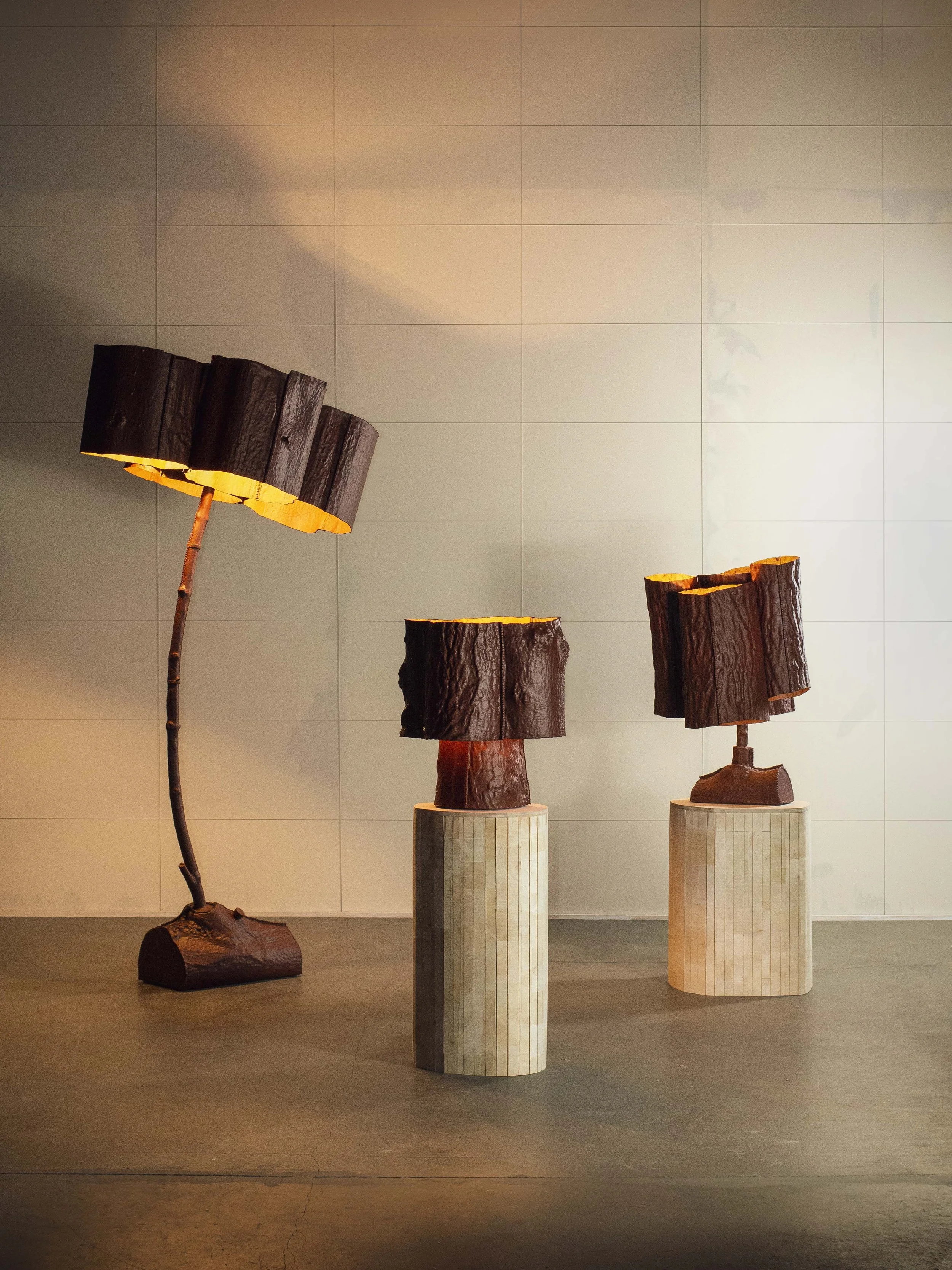 The series of works, entitled ‘Trees From The Garden’, is fabricated almost entirely using a Worbla - a biodegradable thermoplastic, derived from natural, renewable materials. Each lamp is unique, made-up of individual moulds taken from sections of trees.