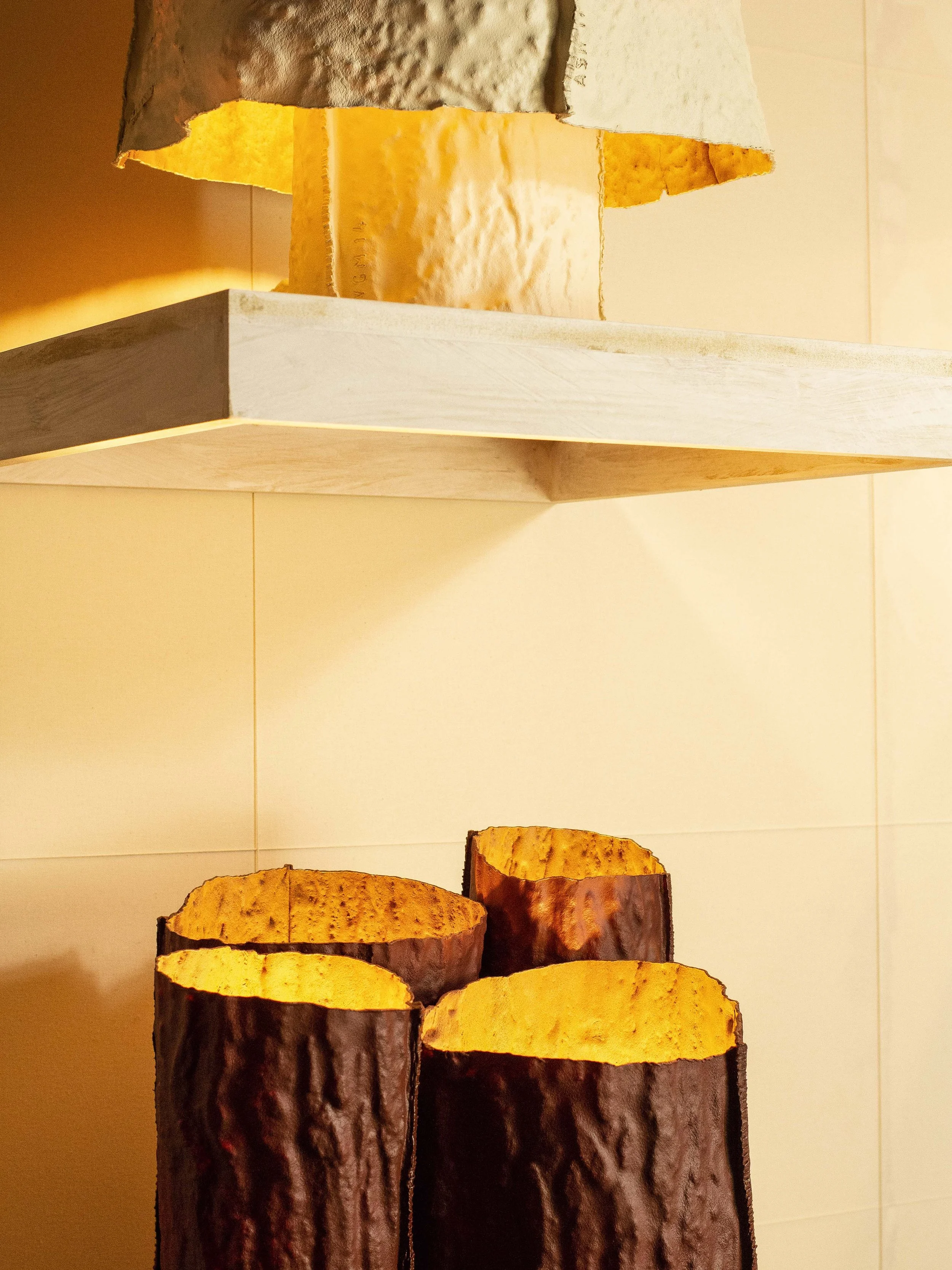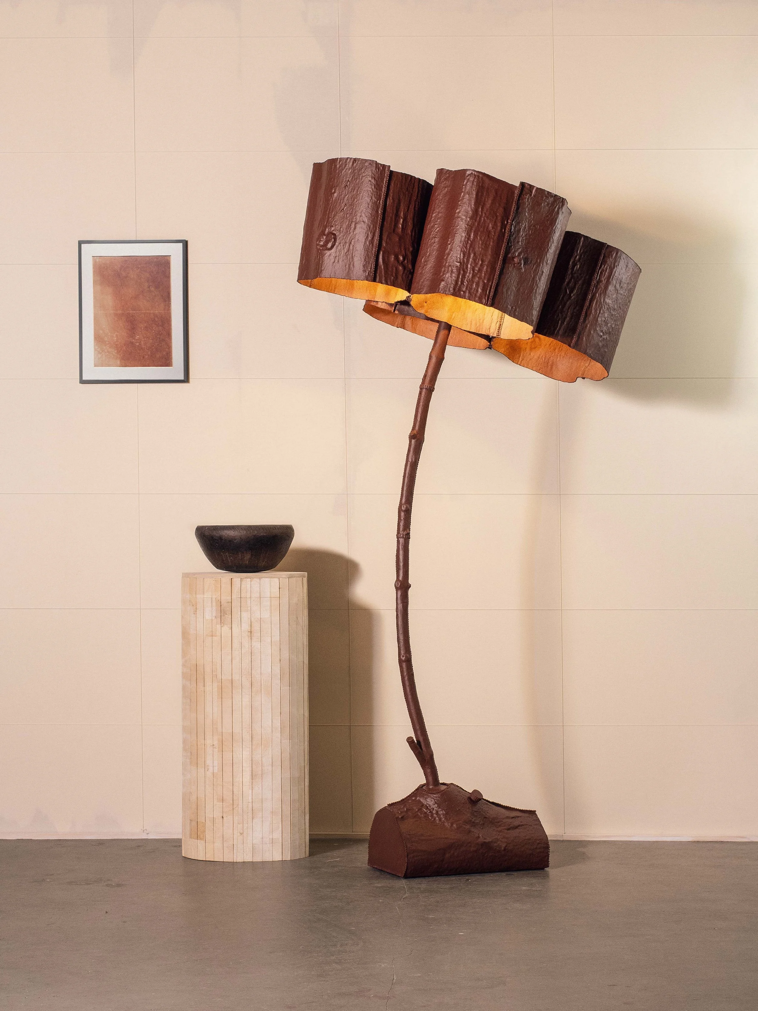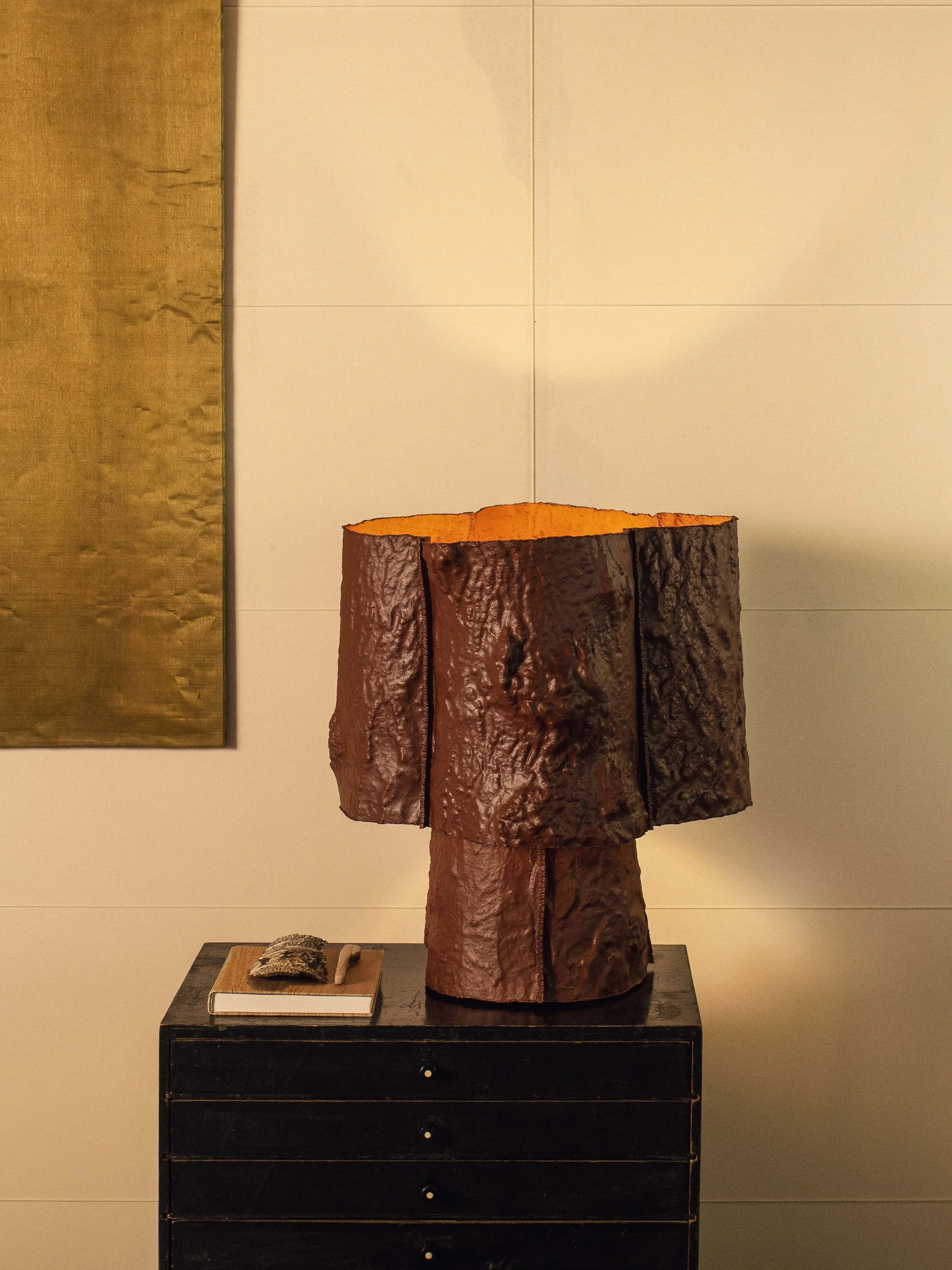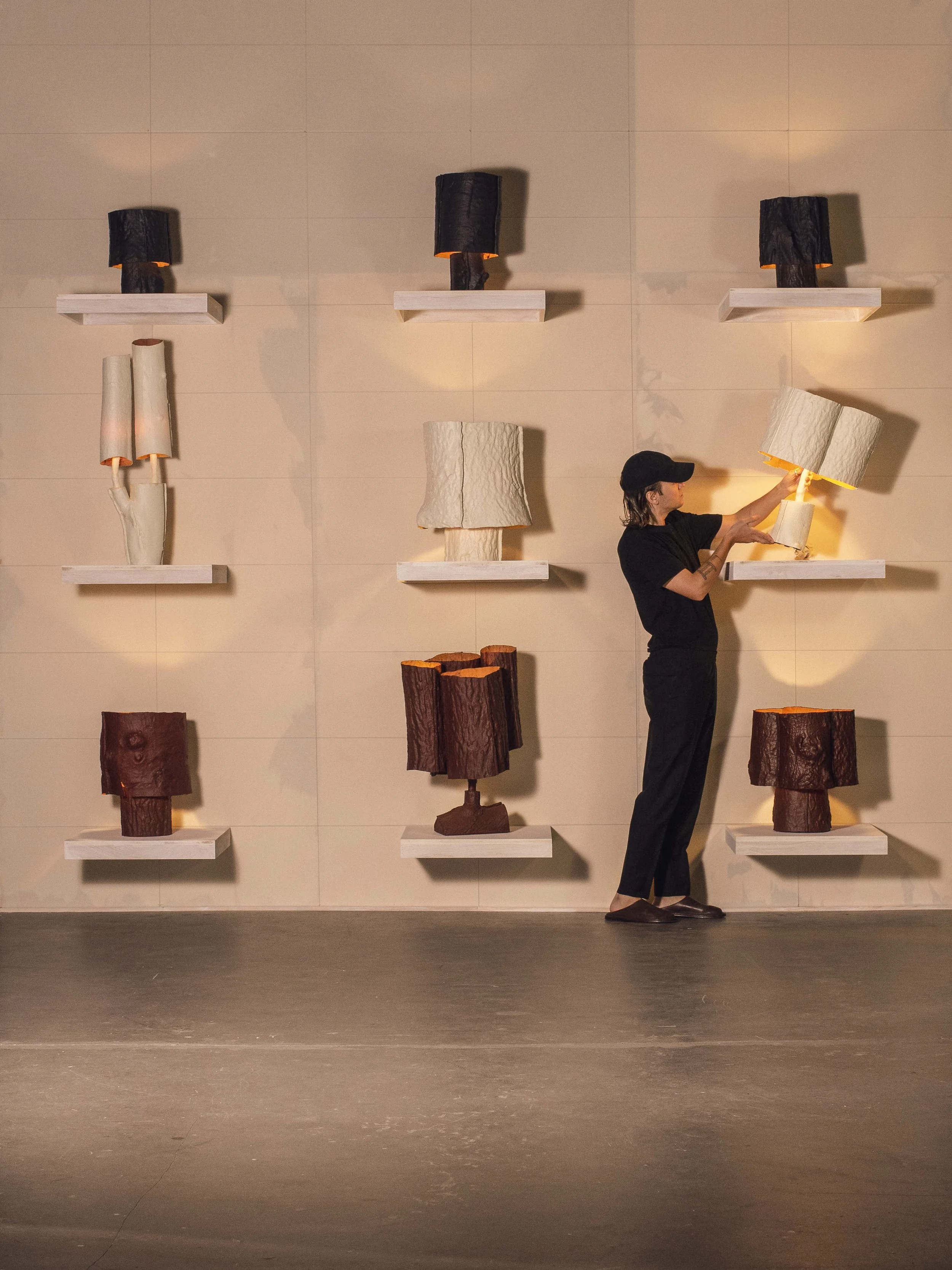 The series of works, entitled ‘Trees From The Garden’, is fabricated almost entirely using a Worbla - a biodegradable thermoplastic, derived from natural, renewable materials. Each lamp is unique, made-up of individual moulds taken from sections of trees.
